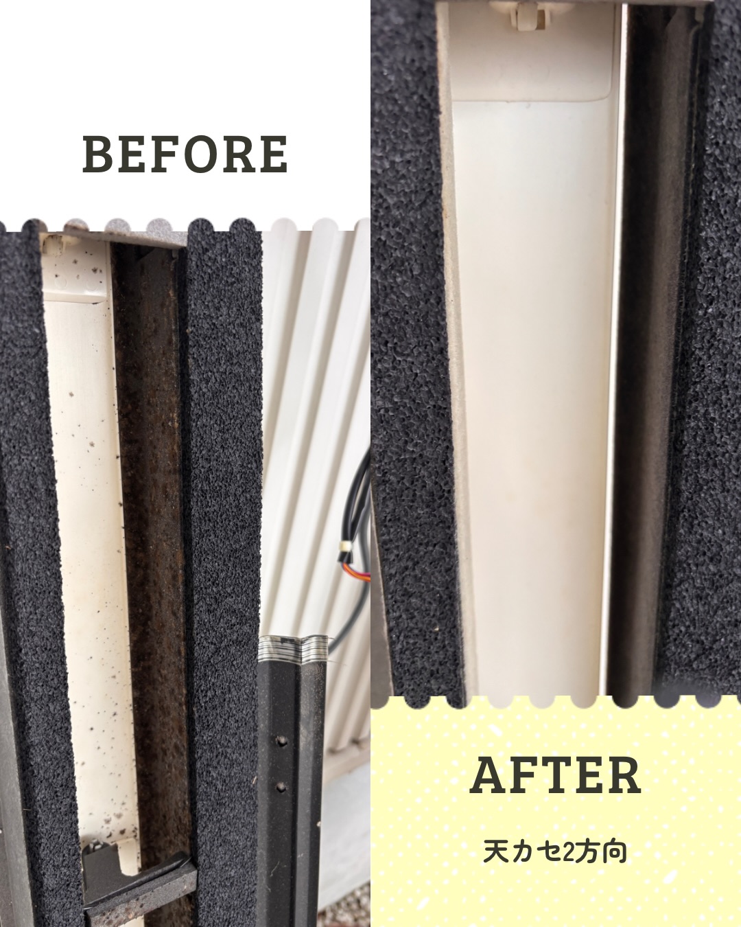 ペットがいるため夏場はほぼ稼働している7年経つ物ですが清掃後、効果が感じられました。清掃前と後の画像も確認させていただきましたがカビとホコリが酷かったですがピカピカになっていました。